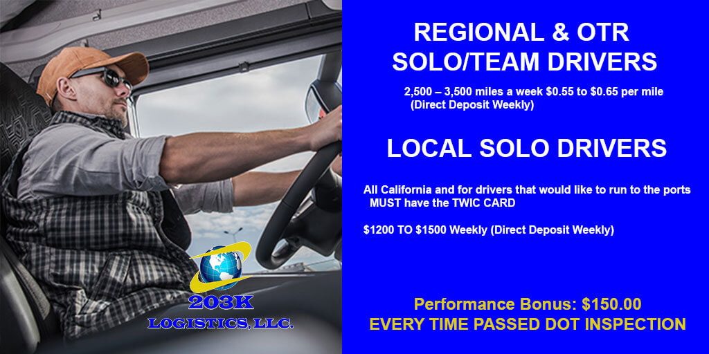 203K Logistics, LLC offers real trucking careers where you’ll find quality home time, good pay, and family-centered support! We are a small enough company and we understand how important the family is. We are now seeking qualified CDL-A truck drivers for regional, OTR, and local dedicated or local routes runs, offering better pay, family atmosphere and more.